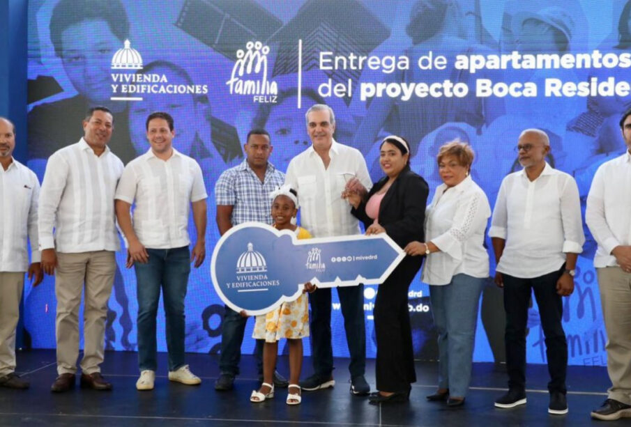 Con esta entrega, en el proyecto habitacional Boca Residence, que contempla un total de 1,096 apartamentos, se marca el inicio de entrega de viviendas por parte del Ministerio de Vivienda y Edificaciones, a través del plan Familia Feliz, iniciativa que pasó a esta entidad por mandato del presidente Abinader.