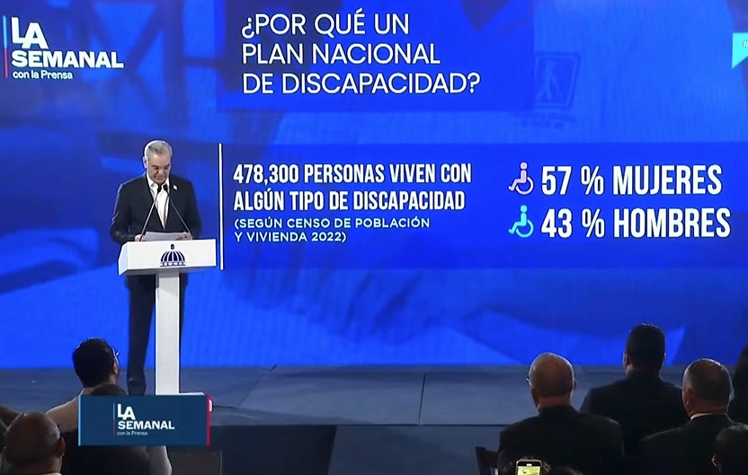 Durante la presentación, en La Semanal con la Prensa, del Plan Nacional de Discapacidad 2025-2035, dijo que de esas personas el 57% son mujeres y el 43% son hombres.