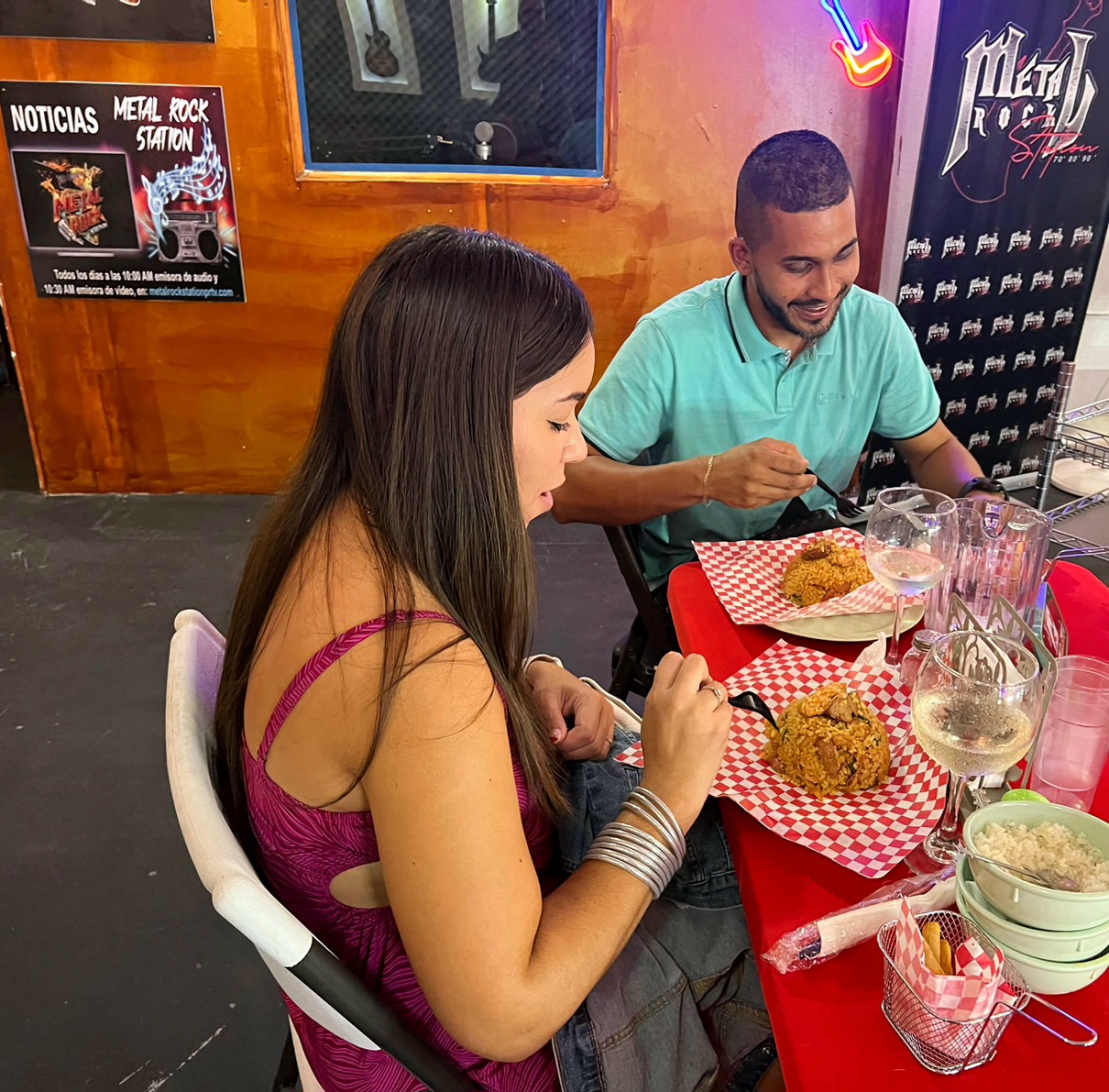 “Podemos transmitir en vivo desde el restaurante y cuando las bandas estén tocando en nuestra tarima, como una especie de radioteatro. Contamos con 4 televisores con la música de la emisora en vivo y uno en la barra con Deportes ️  . Tendremos una tienda con prendas rockeras como relojes, cadenas, sortijas, pulseras, pantallas, gorras, camisetas, abrigos, polo, tazas, llaveros, entre otros. Nos especializamos en arroz gourmet: El Rockero y El Metalero. El Arroz Rockero está mojado en soda, junto a chuletas, pollo, tocineta de pavo, cebollines y cebollas, mientras que el Metalero es uno marinado en jugo de uva, con filete de costilla, pollo, tocineta y cebolla violeta. Siempre tendremos sopas y un especial del día. Número para “Carry Out” y “delivery” es el (939) 445-4945. Estaremos abriendo de viernes a domingo, de 11:00 de la mañana, a 8:00 de la noche. Esperamos su apoyo”, explicó el empresario.