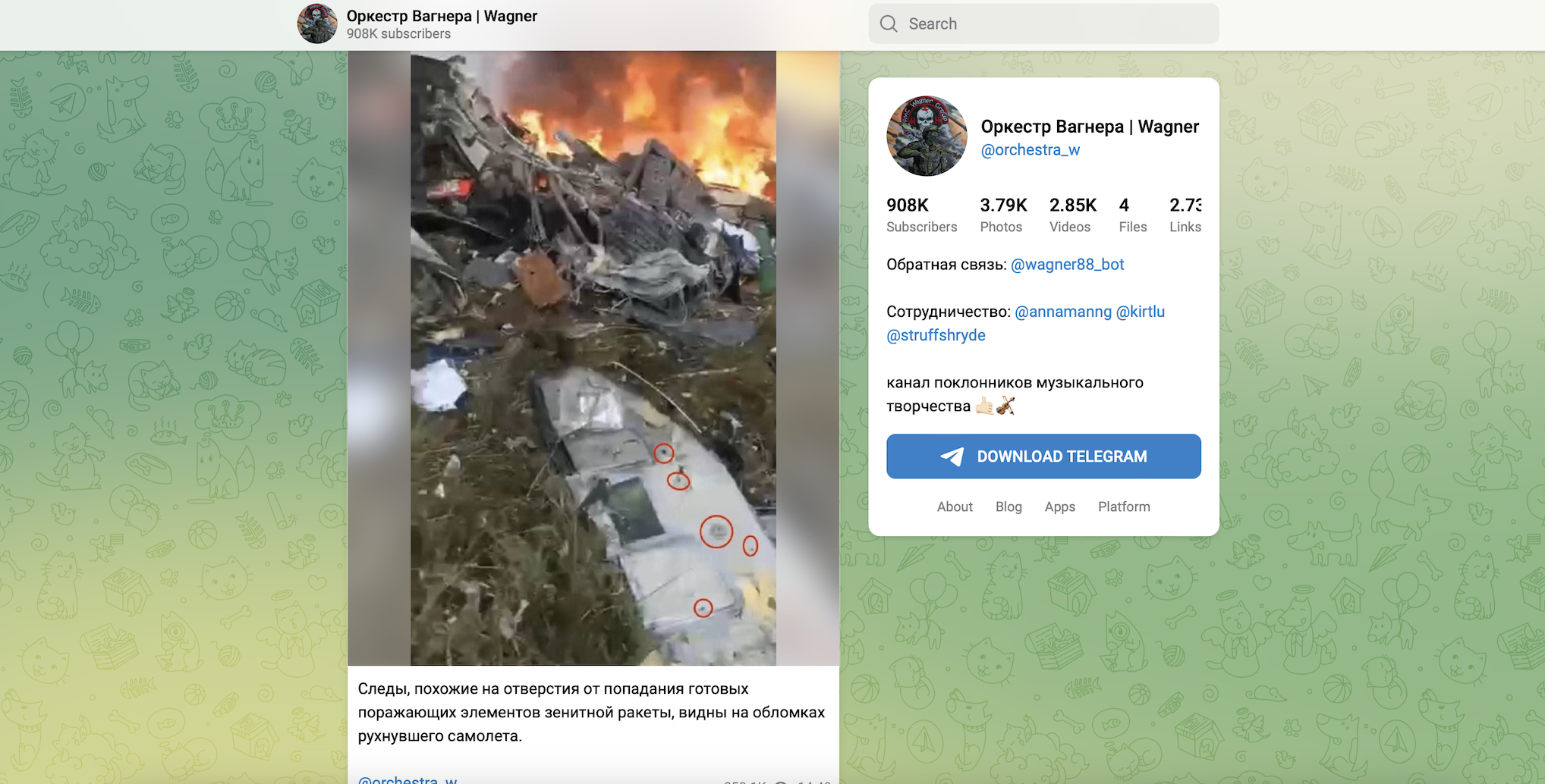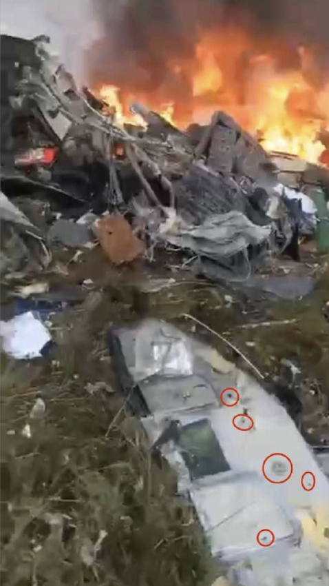 “En los restos del avión estrellado se pueden ver huellas similares a los agujeros producidos por el impacto de misiles antiaéreos ya preparados”, dice otro comentarista del medio pro- Grupo Wagner.ㅤ