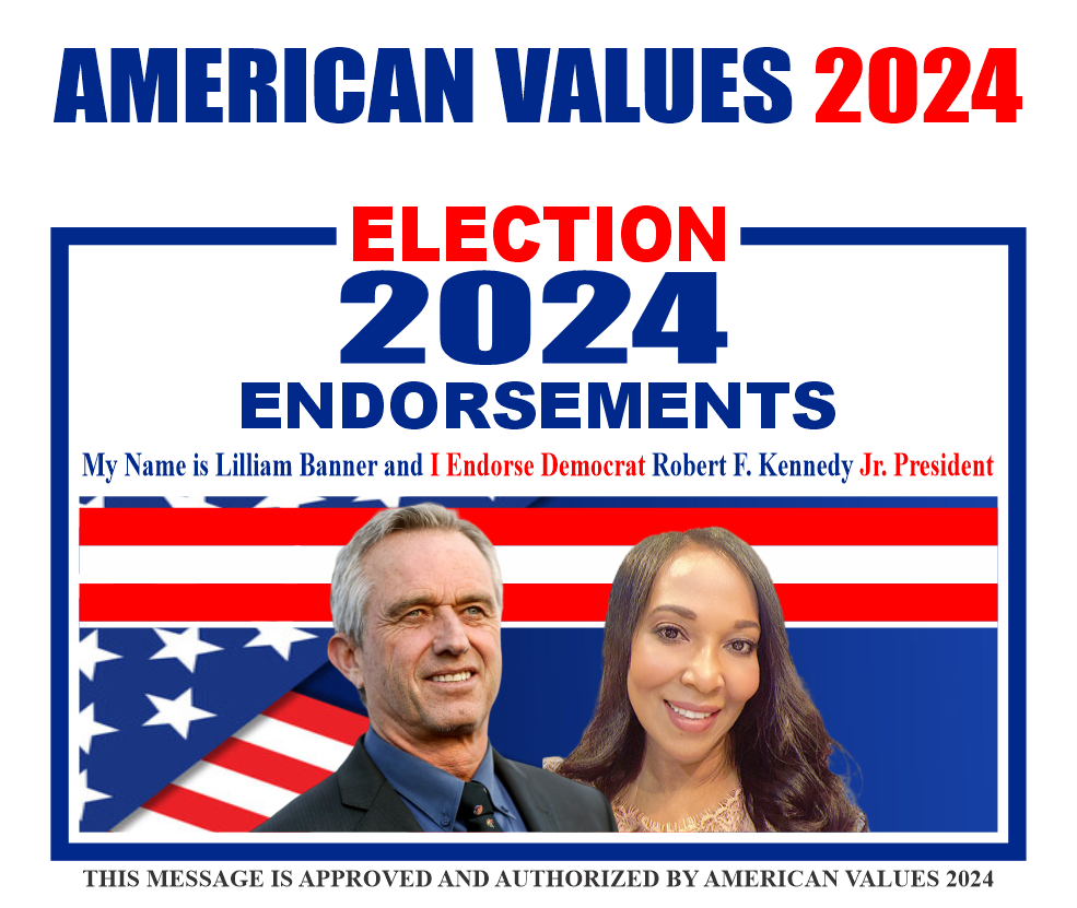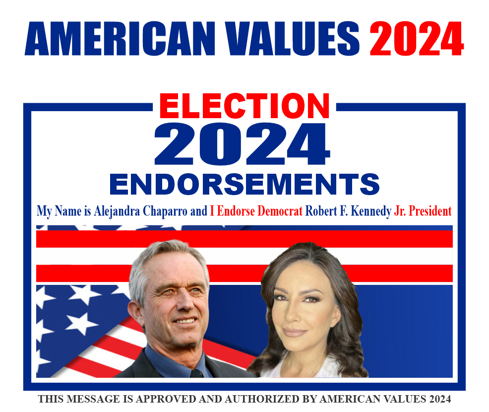 American Values 2024, es una organización 527 sin fines de lucro que apoya y se opone a candidatos para cargos públicos. Evalúan a los candidatos por su apoyo a su agenda de reformas. Apoya a quienes están de acuerdo con ellos y se oponen a quienes no. American Values 2024 ha decidido determinantemente apoyar las aspiraciones presidenciales del precandidato demócrata, Robert Kennedy, Jr.