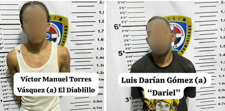 De acuerdo con un comunicado, los detenidos son Víctor Manuel Torres Vásquez “El Diablillo”, de 24 años, y Luis Darían Gómez “Dariel”, de 21, quienes fueron sorprendidos a bordo de una motocicleta marca Tauro, modelo CG200, color negro, sin placa, justo en el momento en que asaltaban a un haitiano a las 6:00 de la mañana del jueves.