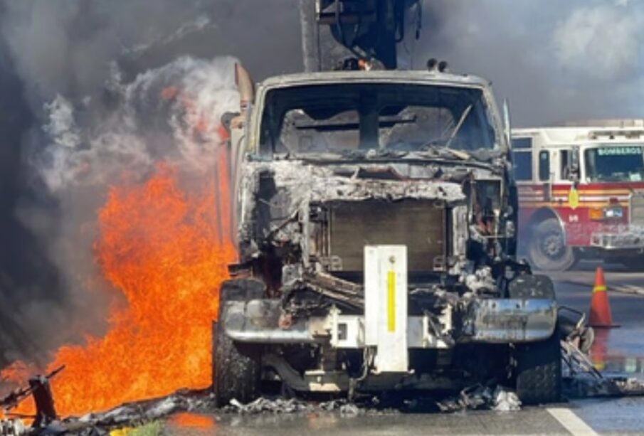 Camión grúa se incendia en Autovía del Este en San Pedro de Macorís; no se reportan heridos