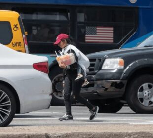 Varios medios de comunicación de Nueva York han captado a migrantes junto a sus hijos vendiendo agua, refrescos, frutas, dulces y otros ...
