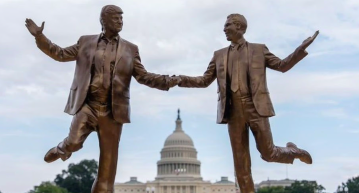 Colocan estatua de Trump y Epstein agarrados de la mano en el National Mall
