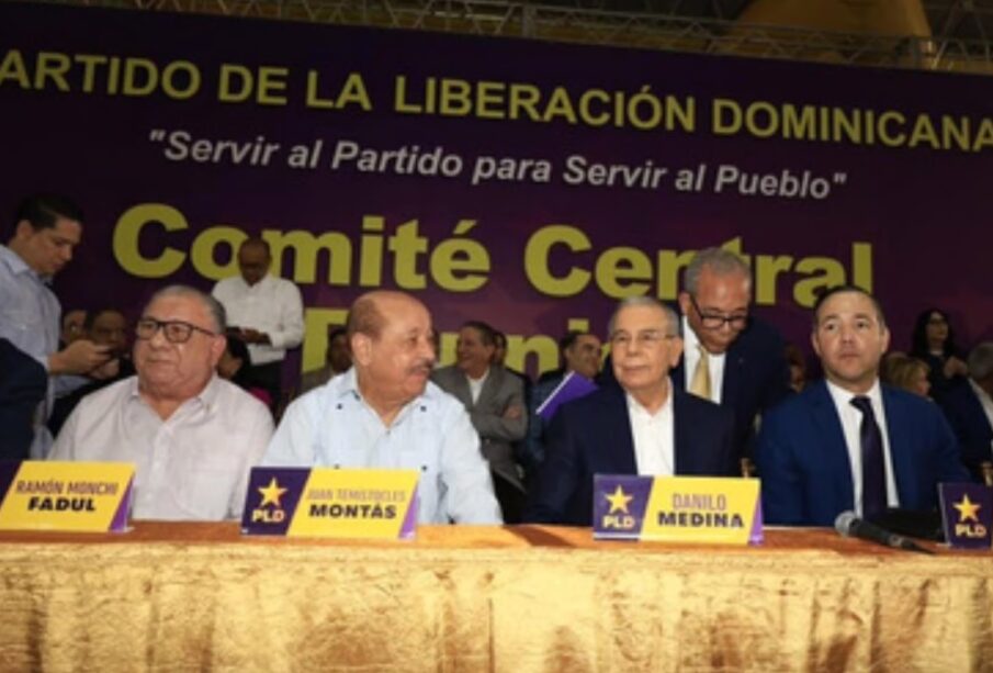 Santo Domingo. –Miembros del Comité Político del Partido de la Liberación Dominicana (PLD) encabezan una reunión con los miembros del Comité Central, que se realiza este domingo en el Club San Carlos.