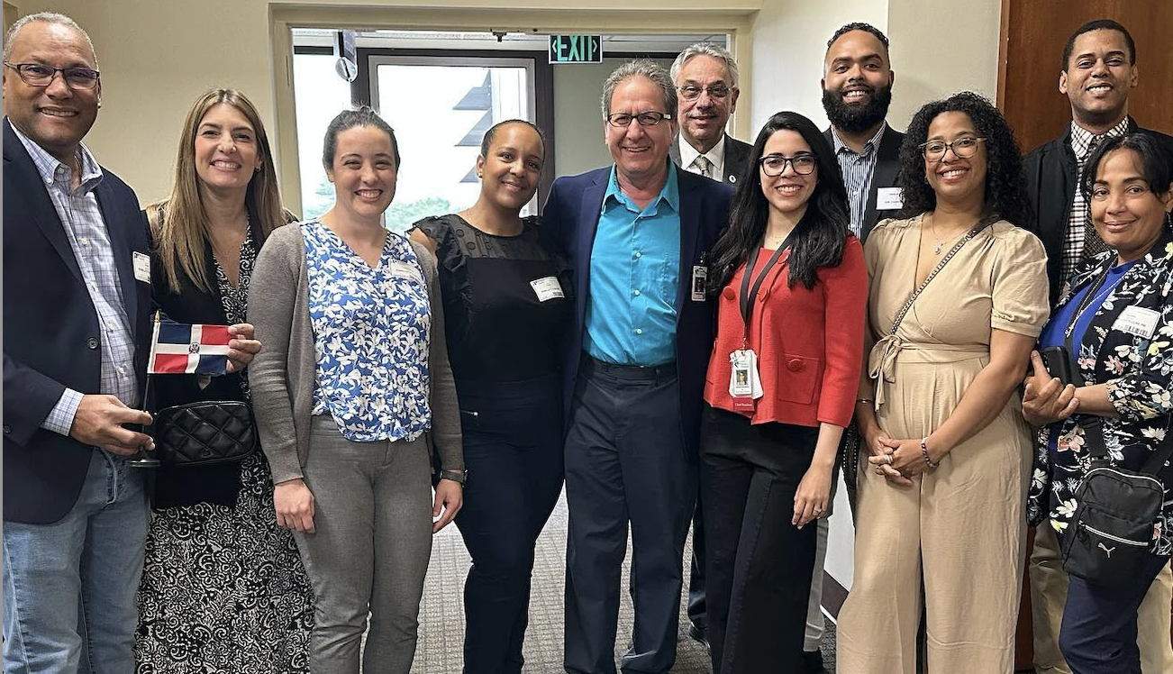 - De izquierda a derecha: Elvis Novas, Trusted Advisor, Dominican Community, Dr. Loraine Amell Bogaert, PhD, Vicerrectora de Internacionalización y Vinculación en la Universidad Unibe, Jett Choquette, MD, UVMLCOM (Class of 2023), Eva Duran, Presidenta, Dominican Community Center, Doctor Majid Sadigh, MD, Marcos A. Núñez C, FICS, M.Ed, Jason Nova, Secretario Ejecutivo, Dominican Community Center, Jacqueline Cabrera, Vice-Presidenta, Dominican Community Center, Dr. Gabriel Polanco, y Jacqueline Saldana, Artist.