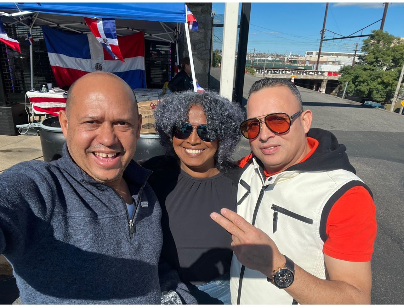 - En la imagen aparecen con camisa roja, María Quiñones Sánchez, segunda, de derecha a izquierda; Danilo Burgos, con Polo Shirts gris, cuarto de izquierda a derecha, Quetcy M. Lozada, con camisa negra, quita de izquierda a derecha con bandera dominicana en la mano; cónsul dominicano en Pennsylvania, con camisa de rayas blanca, sesto de izquierda a derecha, José Herrera Galán, Venancio García y otros organizadores más..
