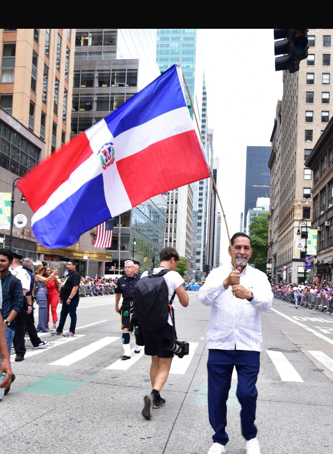 Eligio Jáquez estuvo compartiendo y despidiéndose a la vez de grandes personalidades de la vida política de la Gran Manzana, entre los que se encontraban el congresista Adriano Espaillat, la gobernadora del estado de Nueva York, Kathy Hochul, el alcalde de NY, Eric Adams, el senador estatal de Nueva York Luis Sepúlveda, el senador Federal Chuck Schumer, José Torres (Bigote), el coronel David Vargas, Elías Barrera Coerporán, entre otras personalidades destacadas en Nueva York, quienes junto a Jáquez realizaron el corte de la cinta que dio inicio a este gran desfile que contó con la participación de más de medio millón de dominicanos a lo ancho y largo de la 6ta Avenida, también llamada Avenida de Las Américas.