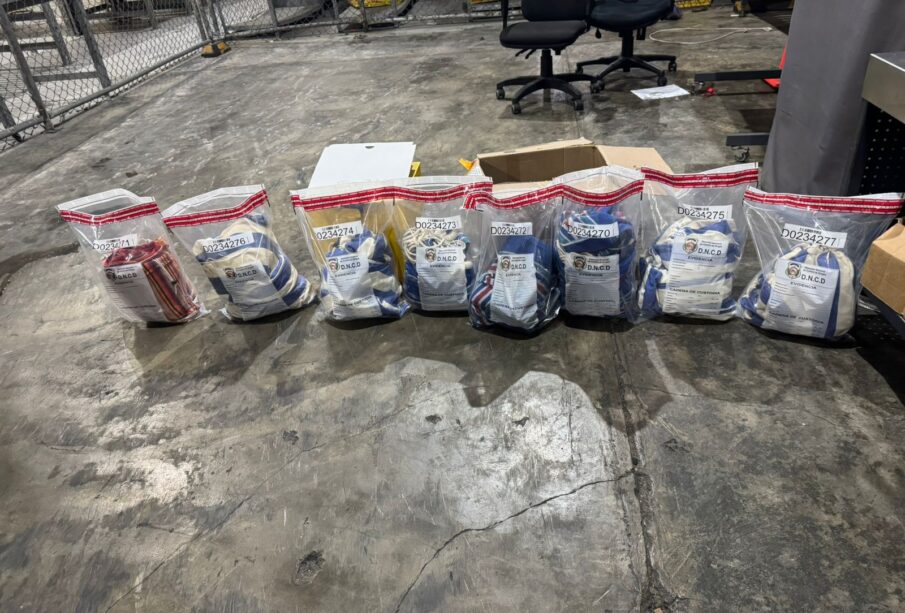 En una primera intervención, agentes antinarcóticos, apoyados por miembros de otras agencias de seguridad, verificaban las cargas que iban a Madrid, España, cuando una de las unidades caninas alertó de sustancias controladas en el interior de una caja de cartón.