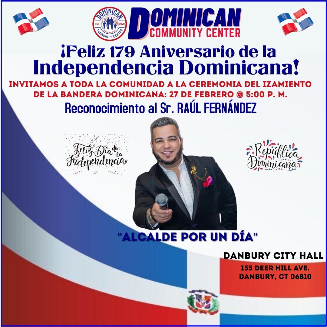 Danbury, CT: La organización comunitaria, Dominican Community Center invita a toda la comunidad a la ceremonia del izamiento de la bandera dominicana en el City Hall de la ciudad el 27 de febrero a las 5pm. Acto que coincide con la celebración del 179 aniversario del día de la independencia dominicana.