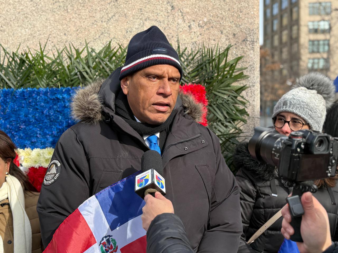 New York.- On the cold morning of this Saturday, the Dominican community in New York once again gathered around a name that has served as a historical and moral compass for nearly two centuries. At Duarte Square, on the Avenue of the Americas between Canal Street and Grand Street, the Consulate General of the Dominican Republic in New York, represented by Consul General Jesús Vásquez Martínez, together with the Instituto Duartiano, led a floral offering in honor of Juan Pablo Duarte on the occasion of his birth, in an event where civic spirit blended with a sense of belonging.