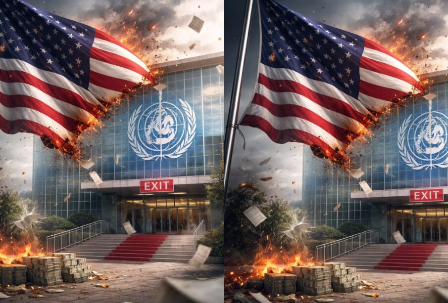 La imagen de esta ruptura se ha vuelto simbólica: un águila estadounidense alejándose del edificio de la OMS, con montones de dinero en llamas en primer plano, representa gráficamente la tensión entre ambos actores.