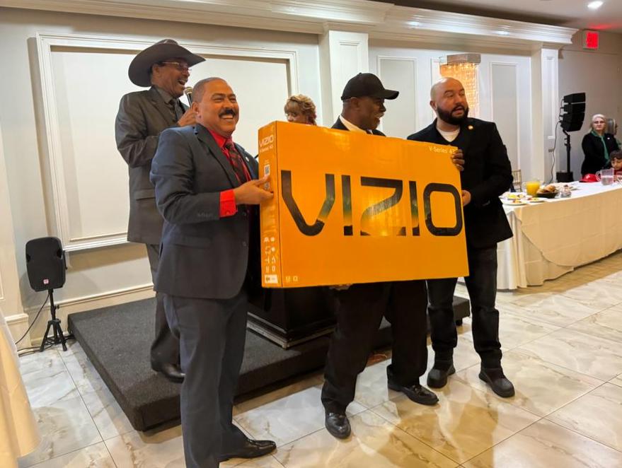 El candidato a diputado por la circunscripción 1 del Exterior por el partido blanco, llegó acto y de inmediato entregó regalos para los miembros que asistieron y celebraron rifas de premios.