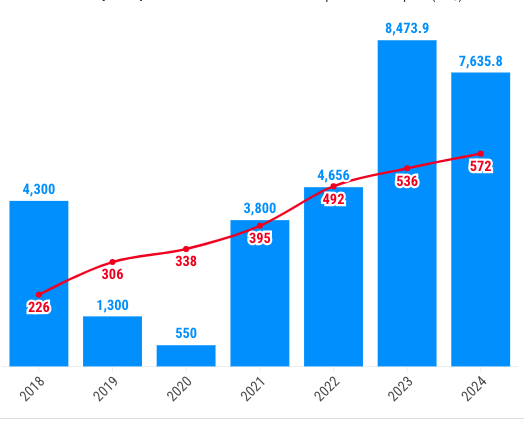 Las instituciones públicas gastaron 3,800 millones de pesos para adquirir automóviles en 2021. Este monto subió hasta los 4,656 millones en el 2022 y 8,473.92 millones de pesos para el 2023, alcanzando así el nivel más alto de los últimos siete años.