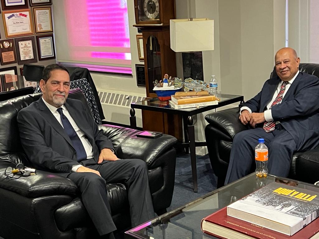 - El cónsul dominicano en Nueva York, Eligio Jáquez en una distendida y cordial conversación tras invitar al Dr. Lantigua para felicitarle por los reconocimientos recibidos del Senado de NY y del presidente Biden.