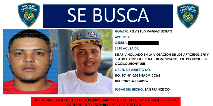El informe policial establece que contra Vargas existe la orden de arresto NO. 601-01-2025-EADM-00368.