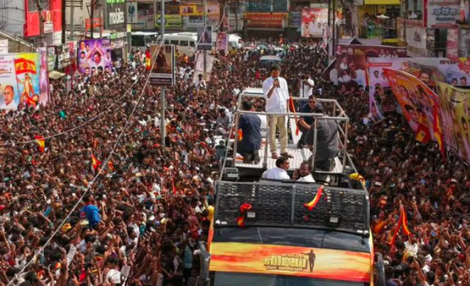 Vijay se encontraba dirigiendo un discurso cuando se desató el caos entre los presentes, lo que obligó a interrumpir la intervención. De acuerdo con The Hindustan Times, gran parte de la multitud intentó acercarse al escenario para ver al actor, lo que provocó el derrumbe de las barricadas y la estampida.