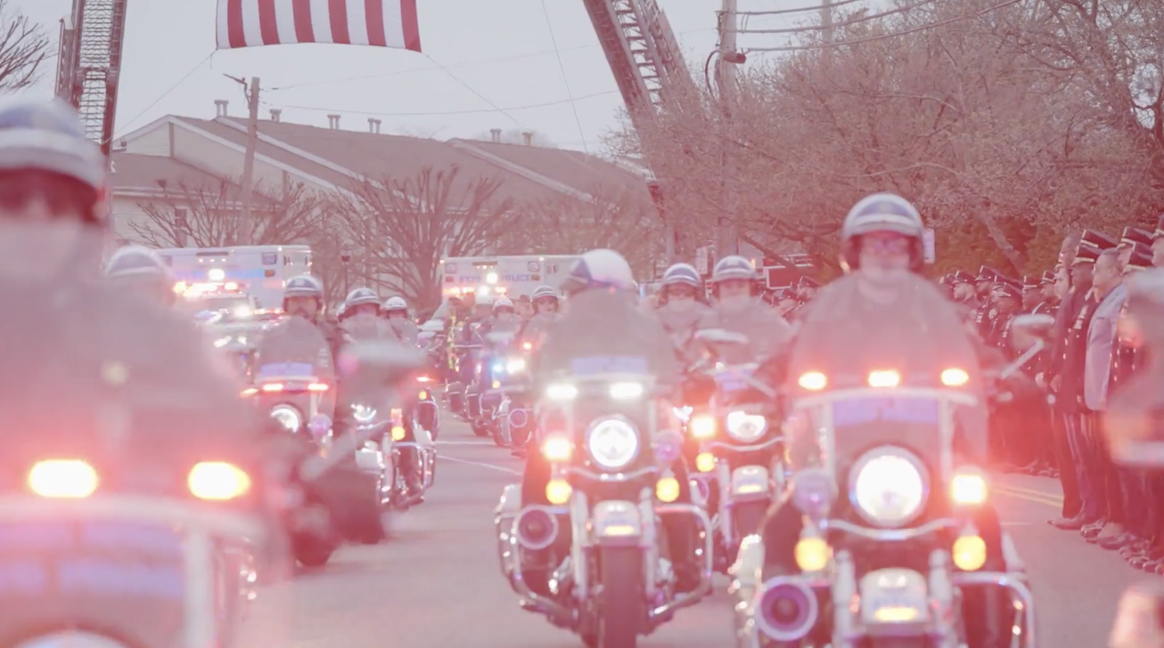 - Flanqueadores motorizados acompañan ambulancia con los restos del oficial Jonathan Diller ante la mirada atónica de compañeros de armas.