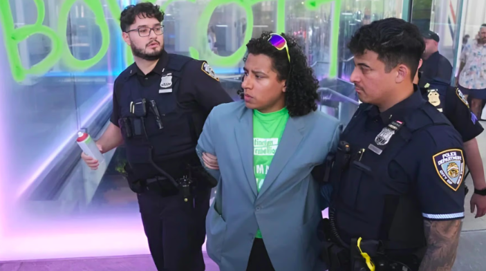 La protesta en contra de Apple surge por miembros del movimiento climático conocido como Extinction Rebellion NYC, quienes realizan manifestaciones en señal de rechazo a lo que califican como la “traición climática de las grandes tecnológicas”.