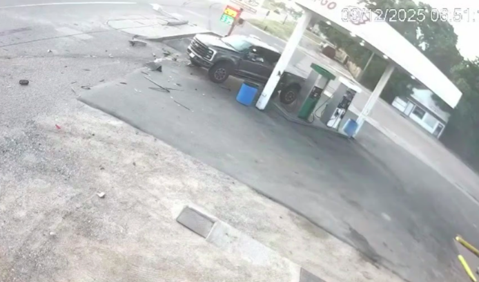 El incidente se originó cuando este perdió vehículo perdió el control y chocó contra un poste de alumbrado para después impactarse con la camioneta que se encontraba en una estación de servicio.