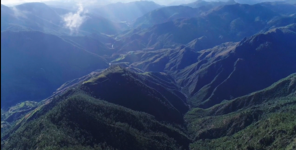 Cabral nos pasea por ante la belleza de esas empinadas altas copas de los pinares que coquetean con las nubes, a lo cual añade la dramática y silenciada situación de la zonas quemadas y desmontadas en laderas y valles intra montanos, es decir el proceso de depredación y destrucción silenciado.