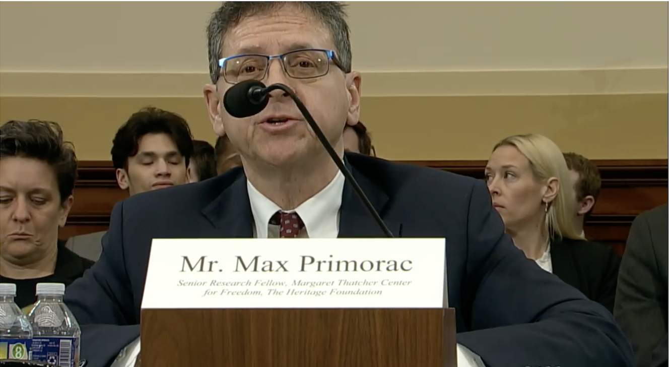 - Max Primorac, miembro senior del Centro Margaret Thatcher para la Libertad, testifica en el Congreso.