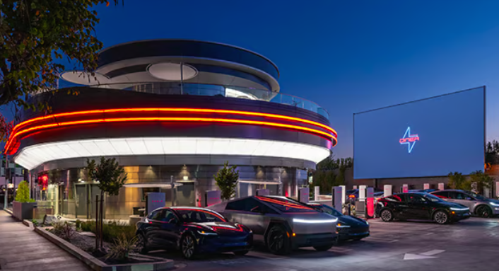 Tesla presentó una nueva ubicación emblemática en Hollywood, California, que integra carga rápida, comida y entretenimiento en un solo destino.