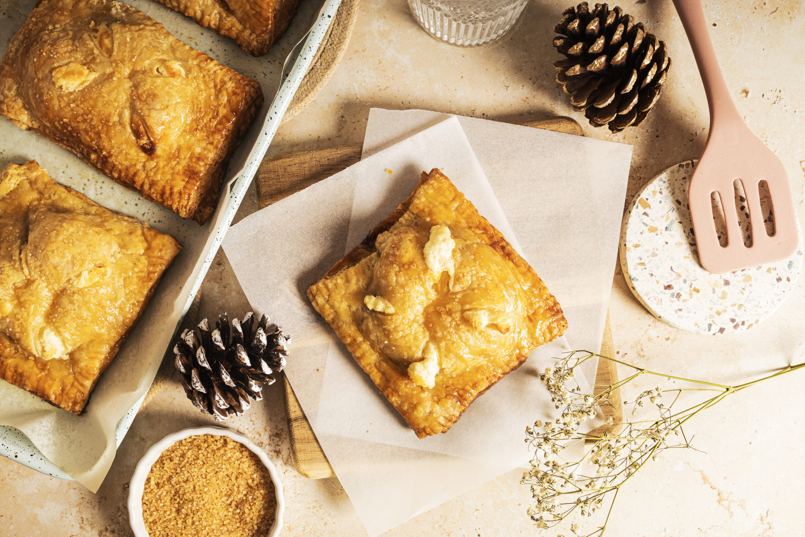 Repite los pasos 6-10 para las hojas de hojaldre restantes hasta que todos los pastelitos estén hechos.