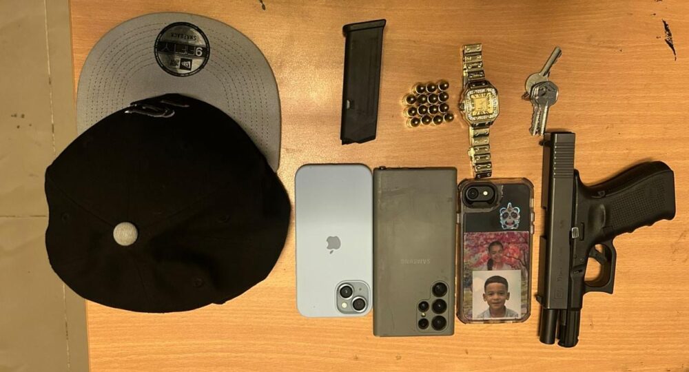 El detenido es Aderly Jorge Vilchez de la Cruz, de 31 años, residente en Santiago, quien fue intervenido por los agentes policiales mientras portaba una pistola Glock calibre 9mm, con su cargador y 13 cápsulas, sin contar con los documentos que amparen su legalidad.