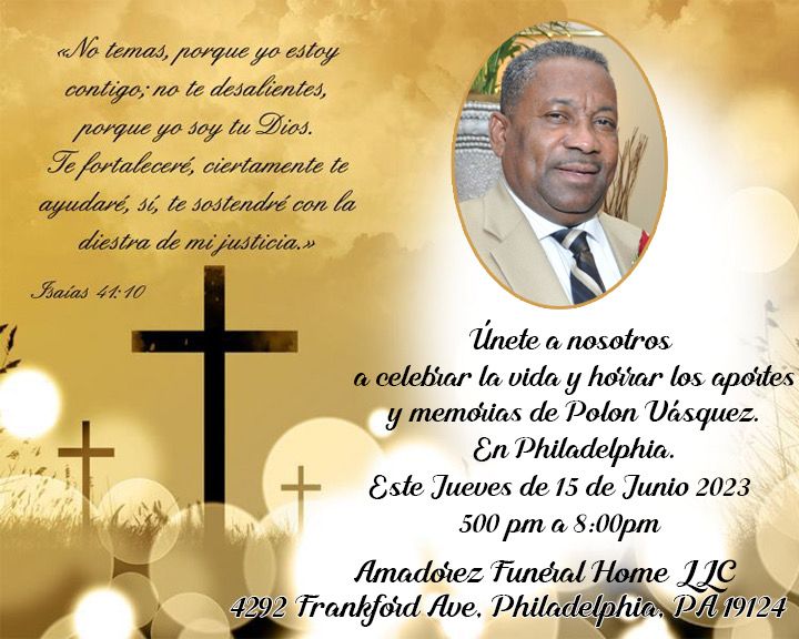 Hablando en exclusiva para el periódico El Faro Latino, el reconocido dirigente político y activista de la diáspora dominicana en Filadelfia, Daniel Croussett, dijo que ya todo está arreglado para los servicios fúnebres del comunicador que serán efectuados el jueves 15 de junio de 2023 de 5:00pm a 8:00pm en la funeraria Amadores Funeral Home, LLC., ubicada en 4292 de Frankford Avenue, Philadelphia, PA. 19114.