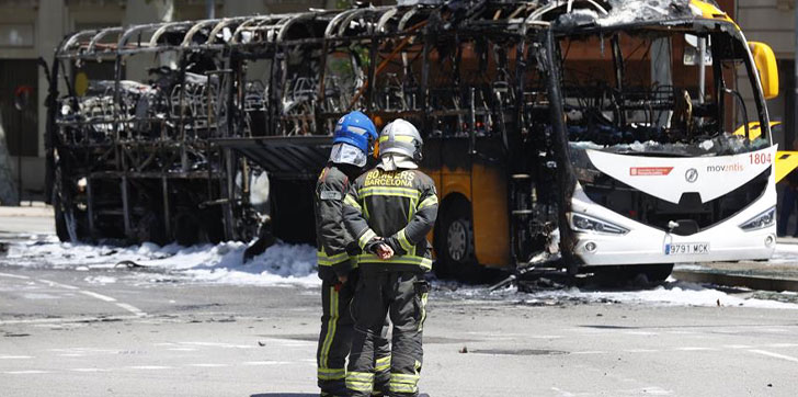 En total, los bomberos reportaron dieciocho buses incinerados, después de trabajar toda la madrugada en la extinción del fuego con quince unidades del Cuerpo General de Bomberos.