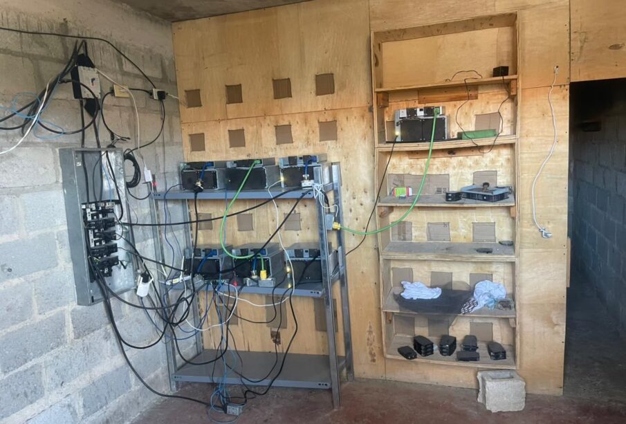 En el lugar, una vivienda de dos niveles en estado de deterioro, fueron ocupados siete equipos de minería de criptomonedas, incluyendo un dispositivo ASIC de la marca Avalon, además de una parábola, un monitor, un router, un abanico de enfriamiento y un sistema eléctrico improvisado con conexiones ilegales.