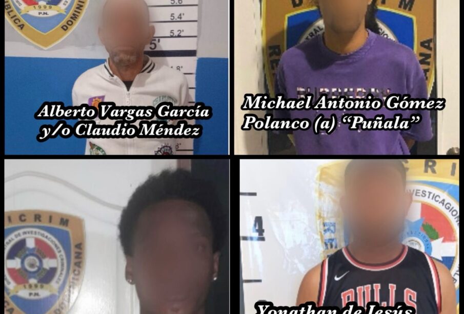 Santiago de los Caballeros, R.D. – La Policía Nacional, a través de su División de Investigación de Delitos Contra la Propiedad, logró la captura de cuatro presuntos delincuentes en distintas intervenciones realizadas en esta ciudad, como parte del seguimiento a casos de robo, atraco y estafa ocurridos en diferentes sectores.
