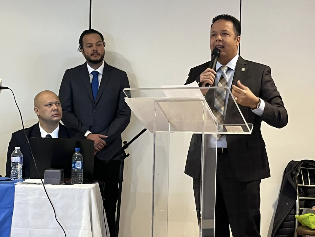 - Diputado Norberto Rodríguez se dirige a la multitud en medio de la juramentación en Toronto.