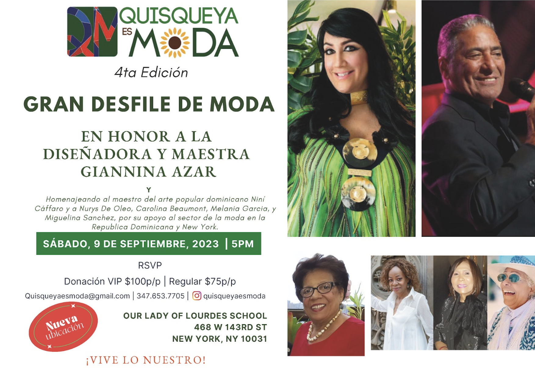 El magno evento organizado por “Quisqueya es Moda”, también es un homenaje al maestro del arte popular dominicano, Niní Cáffaro, Nurys de Oleo, Carolina Beaumont, Melania García y Miguelina Sánchez, por su apoyo al sector de la moda en la Republica Dominicana y Nueva York.
