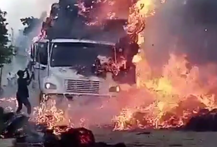 Se incendia camión tras tocar cable eléctrico en Dajabón