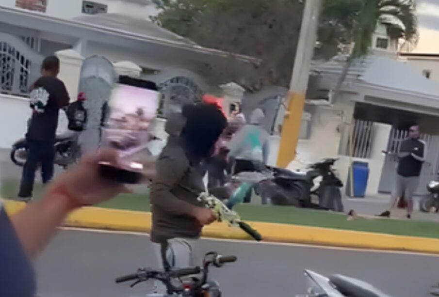 En el audiovisual se observa cómo varios adolescentes encapuchados aparentan una pelea entre ellos lanzando disparos con las armas artificiales.