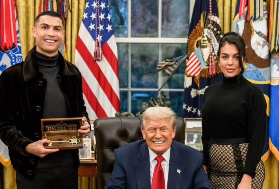 Cristiano, acompañado de Georgina Rodríguez, ocupó uno de los asientos cercanos al frente del Salón Este, dejando claro que su asistencia no fue casual. En un gesto simbólico, Trump le obsequió una llave dorada de la Casa Blanca, un detalle que mezcla poder, deporte y diplomacia.