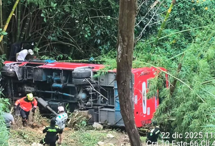 Varias personas resultaron heridas tras un bus intermunicipal de la ruta Rionegro-Medellín en Colombia, precipitarse a un abismo, tras colisionar con un furgón que quedó volcado.
