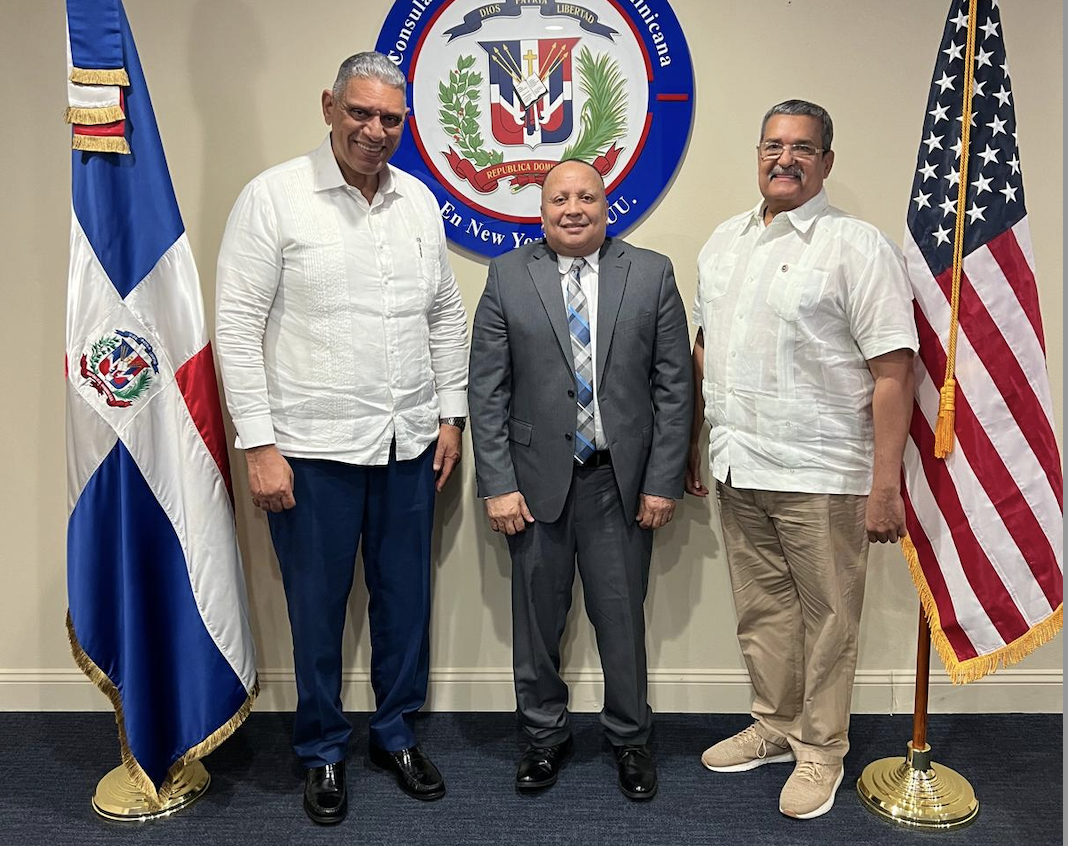 - De izquierda a derecha: el Cónsul General de la República Dominicana en Nueva York, Jesús Antonio Vásquez Martínez (Chú); Esteban Cabrera, director del periódico El Faro Latino; y José Torres, líder político y comunitario de la diáspora dominicana en Nueva York.