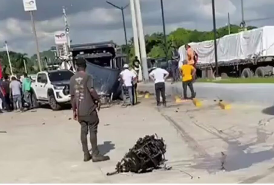 Vehículos colisionan en estación de combustible tras explosión de neumático en San Cristóbal