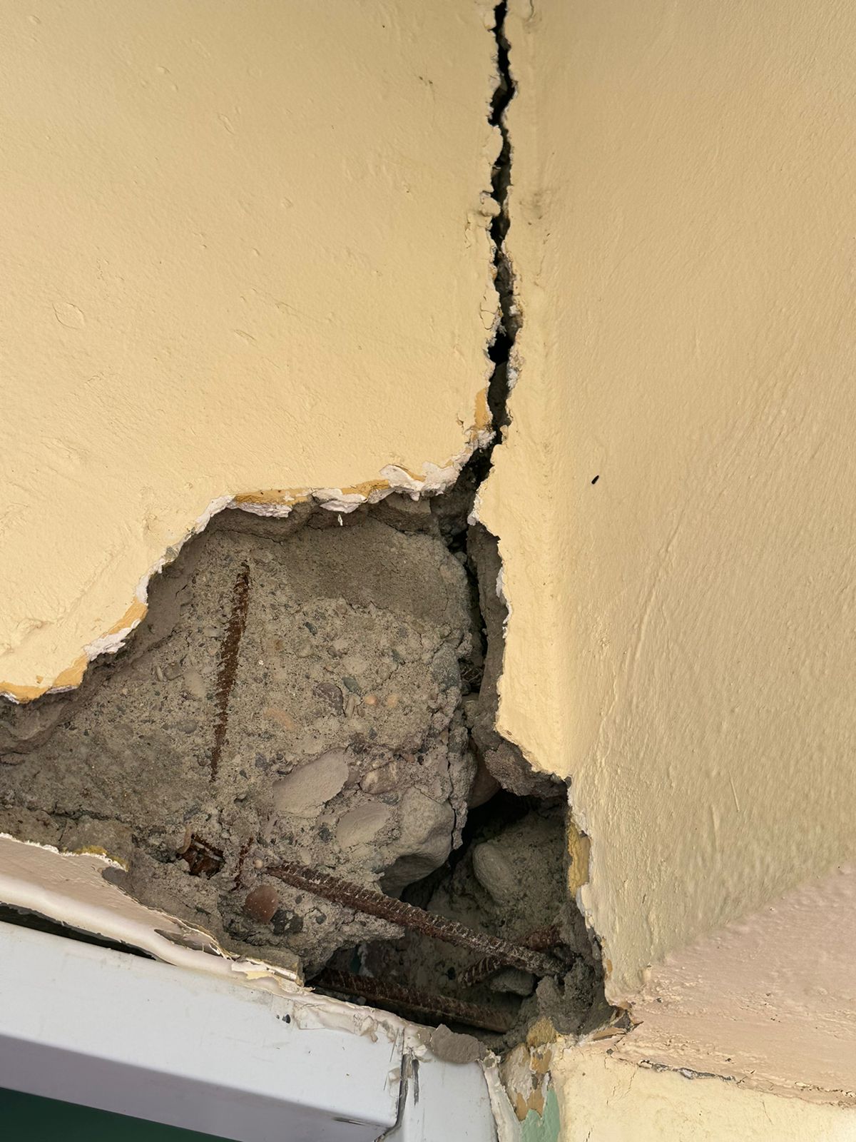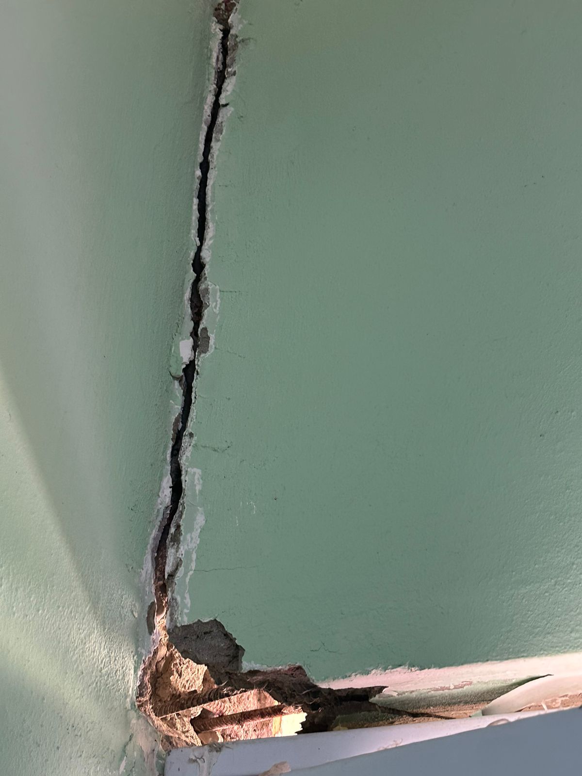 JV: “Exacto, ya el año escolar va a comenzar y el peligro de muerte para los niños y profesores sigue igual. Si mal no recuerdo, las autoridades de educación enviaron a realizar algunas reparaciones que consistieron en poner masilla y cemento para maquillar las grietas, pero el peligro es peor aún.”