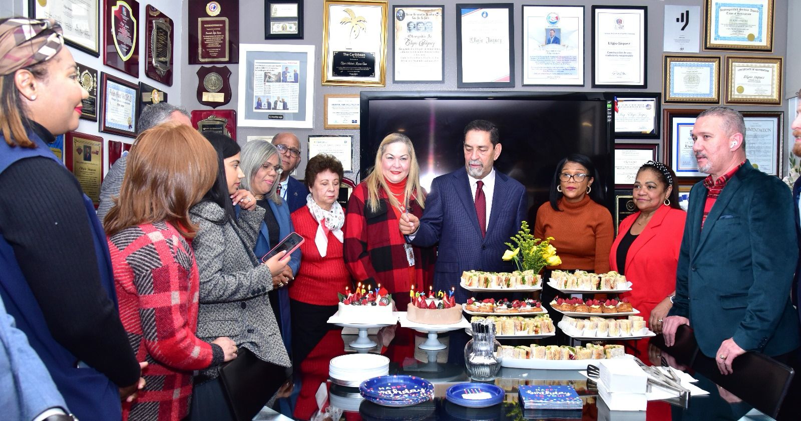 Nueva York: El Departamento de Prensa del Consulado General de la República Dominicana en Nueva York y todas las dependencias de esa delegación diplomática felicitan en el día de sus cumpleaños al cónsul general, Eligio Jáquez, al que todo el personal le celebró por todo lo alto la fecha de su natalicio con una demostración de gran afecto y cariño hacia un diplomático considerado el mejor cónsul dominicano de todos los tiempos en la Gran Manzana.