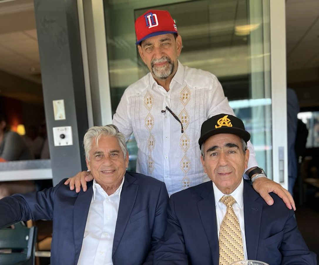 - De izquierda a derecha: Miguel Guerra Armenteros, centro parado, cónsul Eligio Jáquez y Víctor García Sued, gerente general de las Águilas.