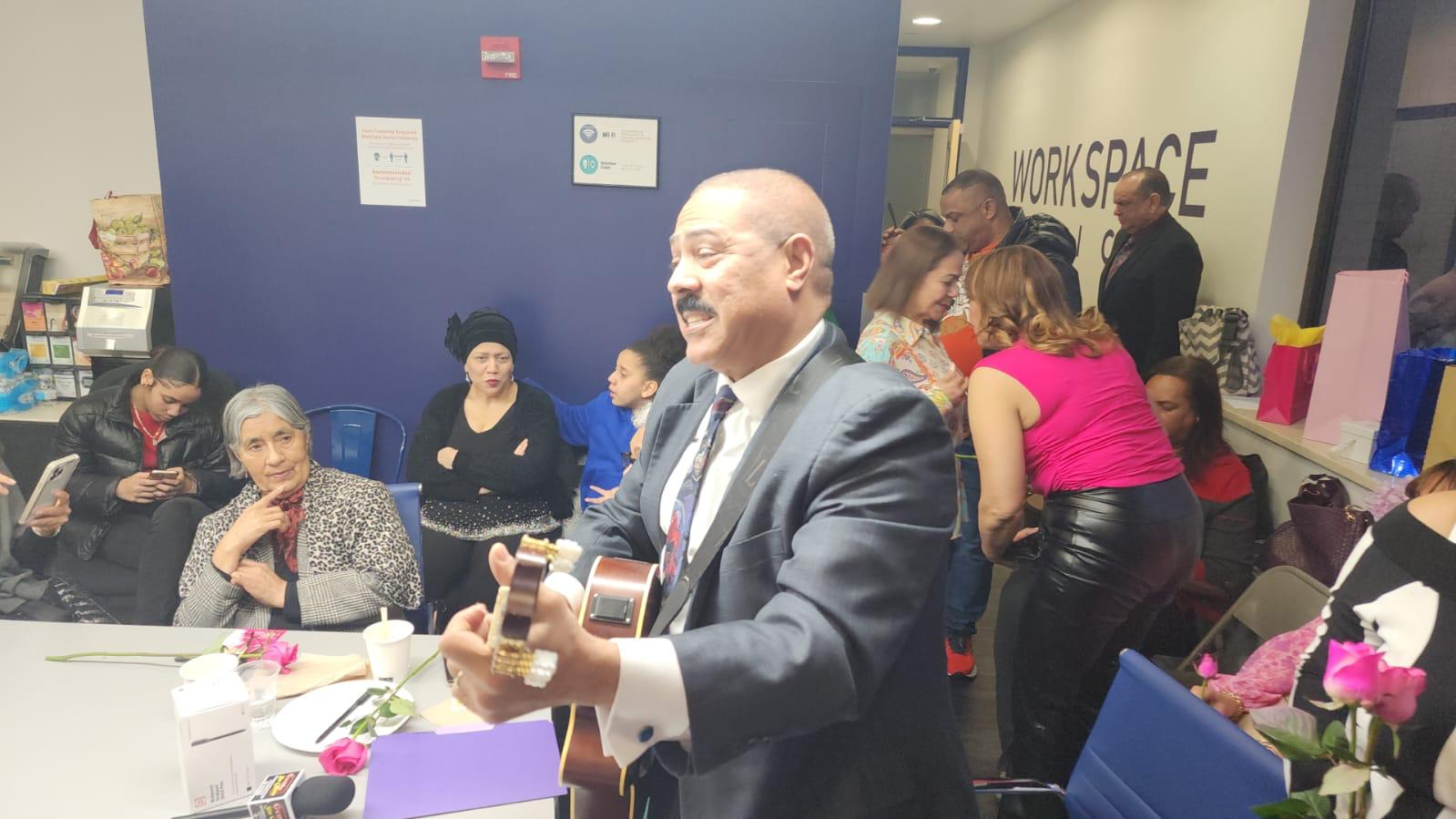 NUEVA YORK. – El Dr. Yomare Polanco, candidato a diputado de ultramar por la circunscripción #1 de Estados Unidos del Partido Revolucionario Dominicano (PRD)quien estuvo cantando y deleitando con canciones dedicadas a la mujer en un divertido acto organizado por (FEDOMUSDE) para conmemorar el Día Internacional de la Muer en esta ciudad, Polanco animó con su magistral toque de guitarra e interpretaciones.(FEDOMUSDE), organización que está presidida en esta ciudad por Mayra Peña, celebró su tradicional evento con motivo del día Internacional de la Mujer con una conferencia a cargo de la educadora Tammy Nin.
